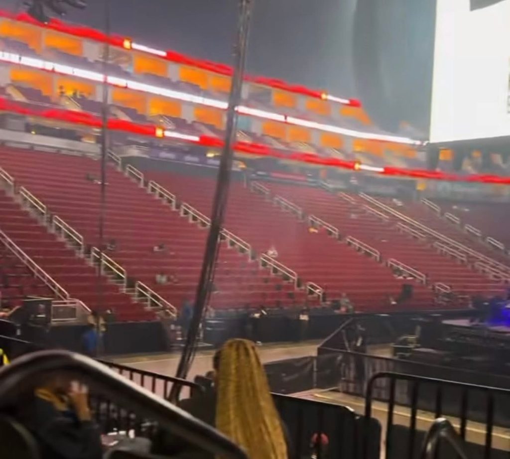 In the clip, the venue appears largely empty, with reports suggesting only 2,000 tickets were sold for the 18,000-seat arena.