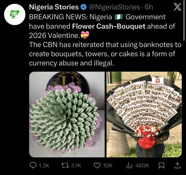 The Central Bank of Nigeria (CBN) has reportedly banned cash bouquets, classifying them as illegal, placing them under offenses such as defacing or tampering with naira notes.