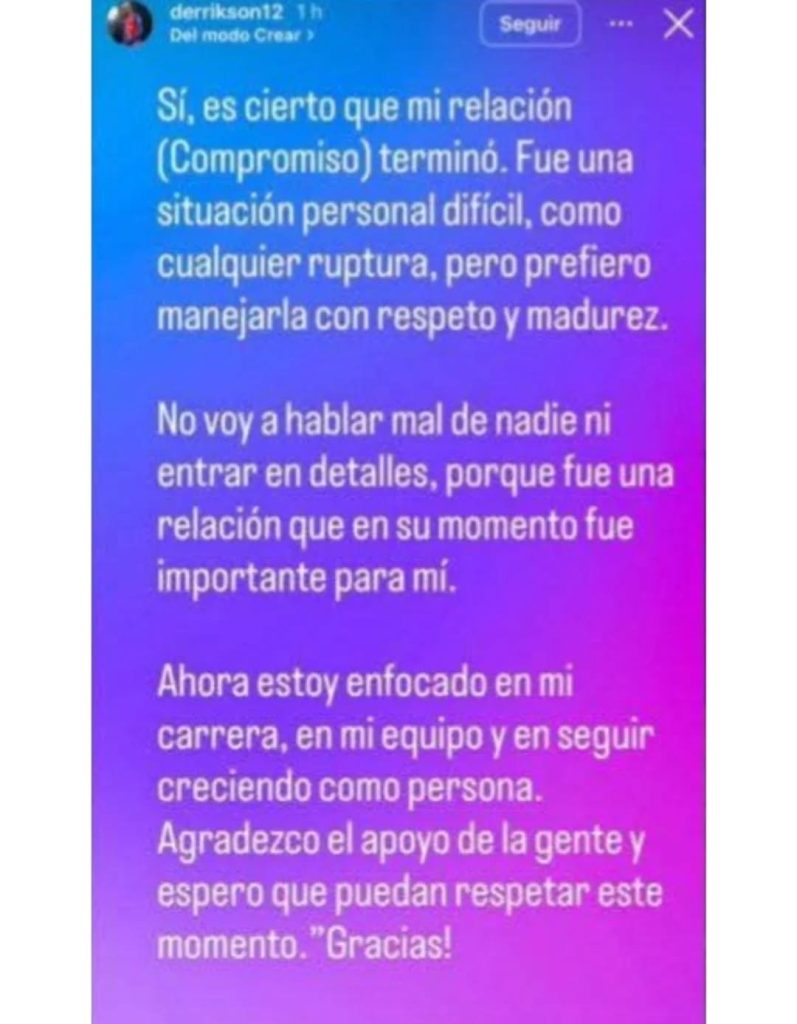 In the post, written in Spanish, he described the break-up as a difficult personal situation but said he prefers to handle it with respect and maturity.