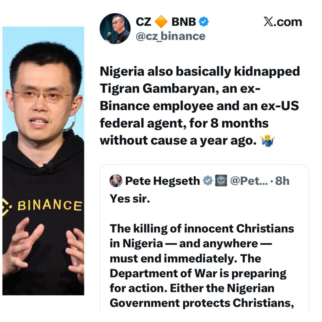 Binance founder, Changpeng Zhao (CZ) has drawn global attention to Nigeria’s insecurity, accusing the government of kidnapping his former employee, Tigran Gambaryan amid rising tensions with the United States over Christians attack.