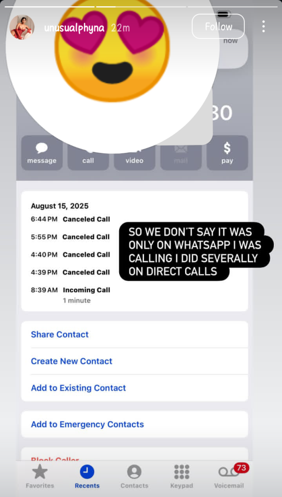 The chats appeared to show both parties discussing meeting times, warning messages, and multiple missed calls from her to him. She further included direct call logs to prove she attempted to reach him outside WhatsApp.