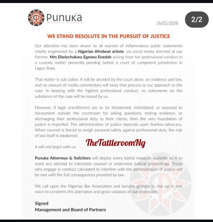 Punuka also affirmed its commitment to protecting its legal team from any form of intimidation and called on the Nigerian Bar Association to speak out against harassment targeting legal practitioners.