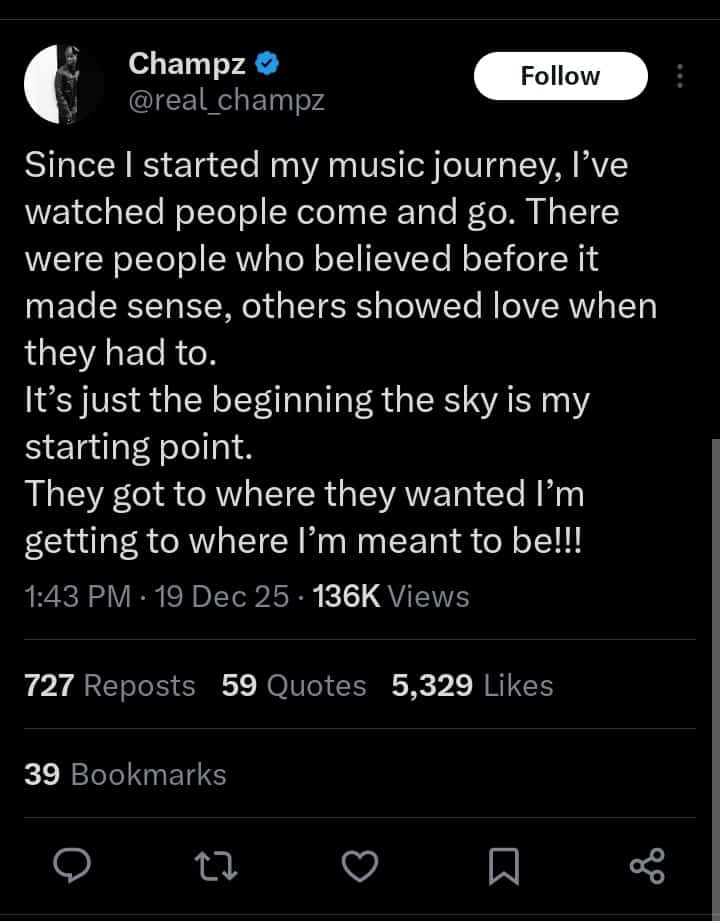 On his Twitter page, he stated that since he started his music journey, he has watched people come and go.