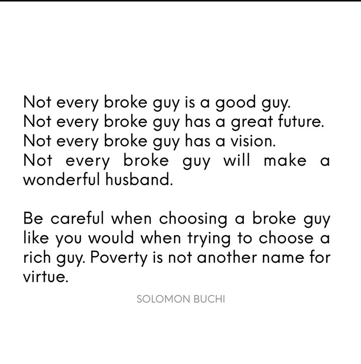 Be careful when choosing a broke guy, just as you would when trying to choose a rich guy.Poverty is not another name for virtue.”
